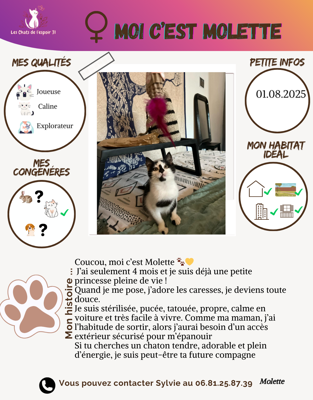 đ Pour adopter, il suffit de contacter Sylvie la prĂ©sidente au 06.81.25.87.39 ou de nous envoyer un mail Ă leschatsdelespoirdu31@gmail.com