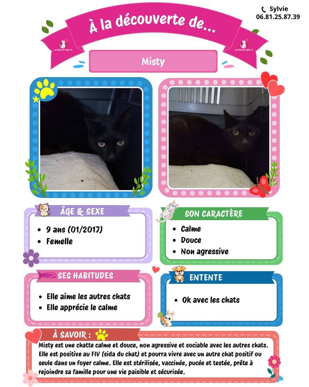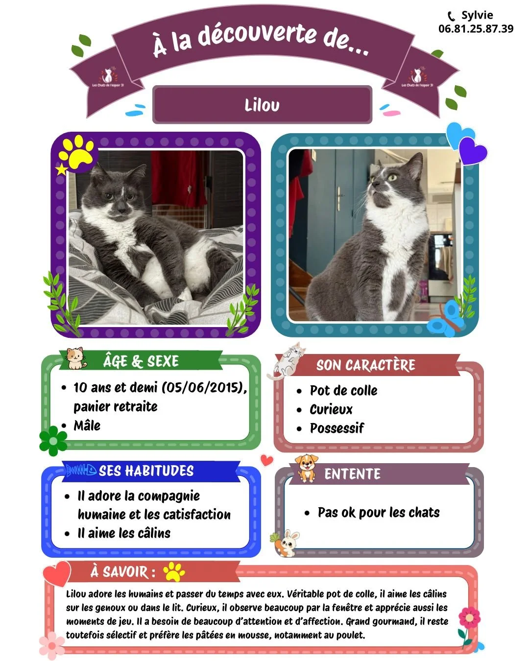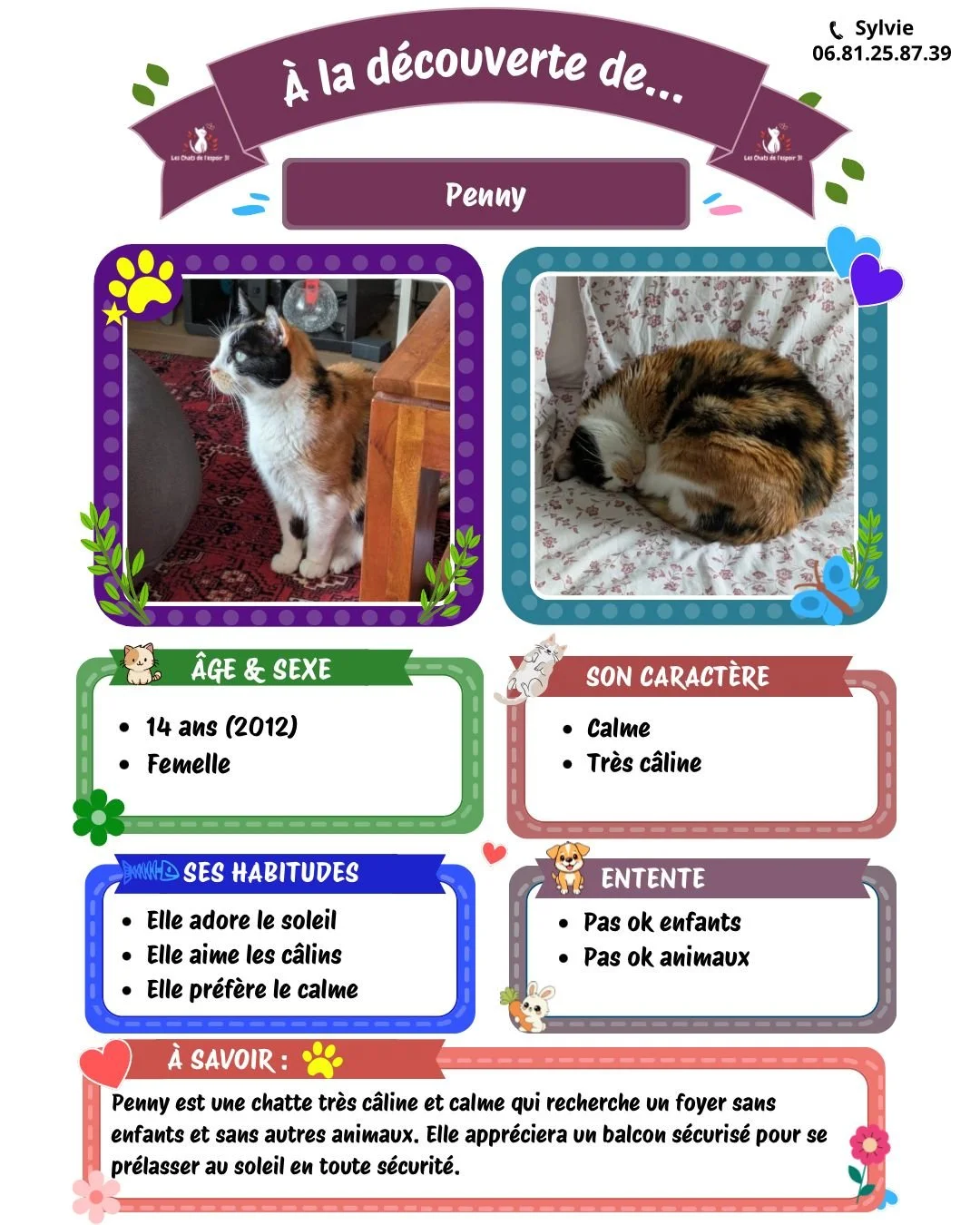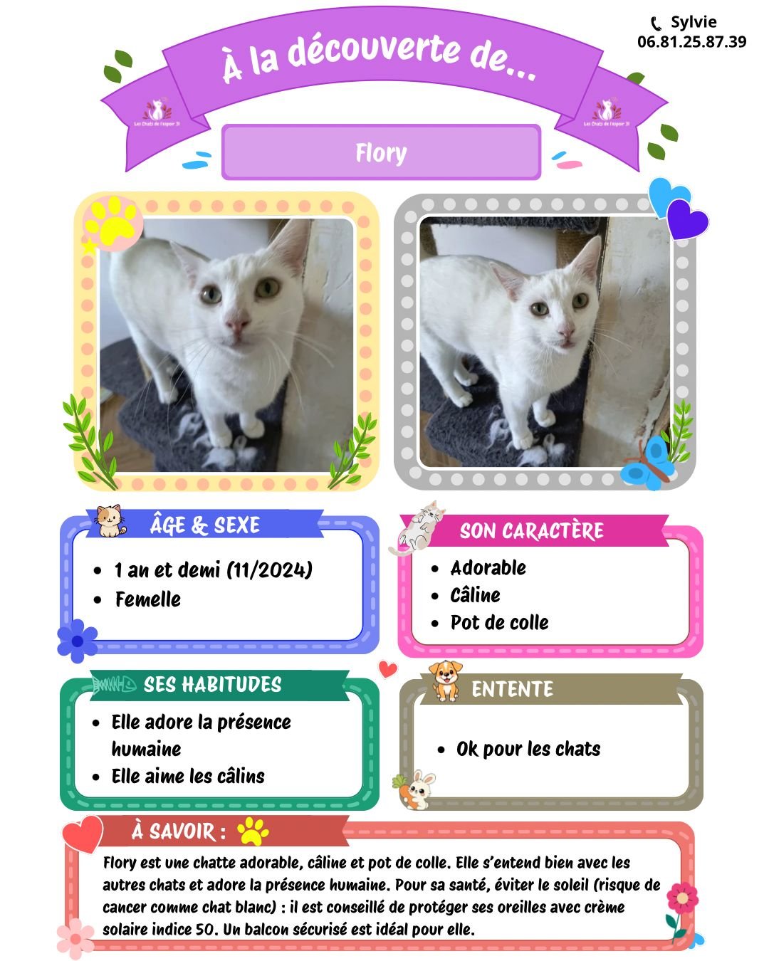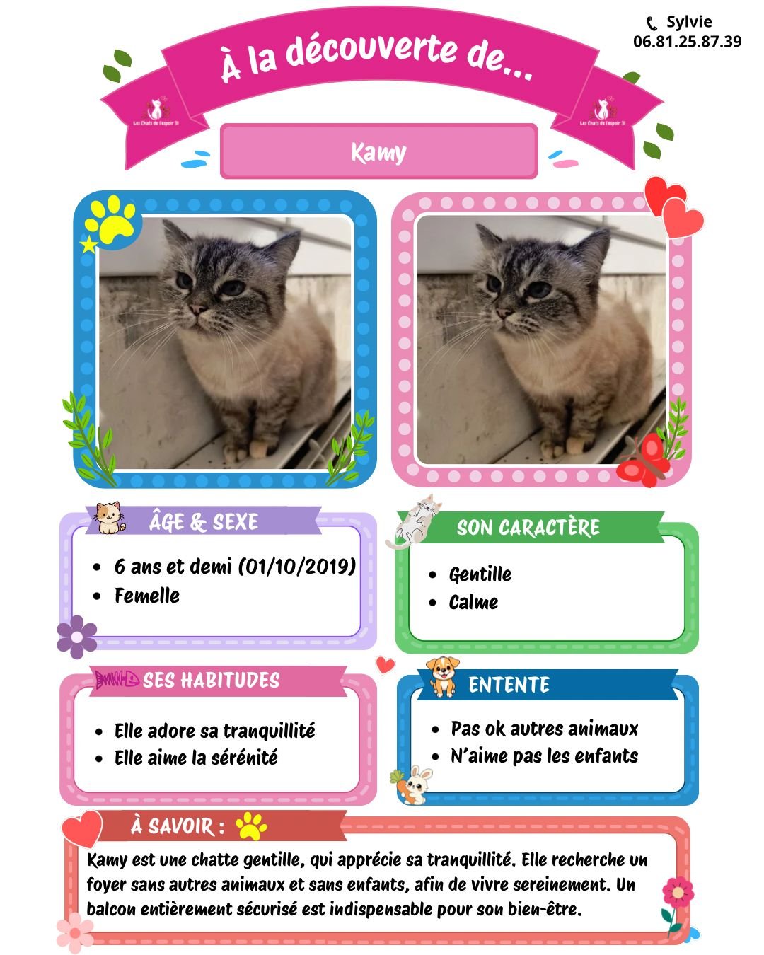 Pour toutes questions ou demande vous pouvez contacter Sylvie au 06.81.25.87.39