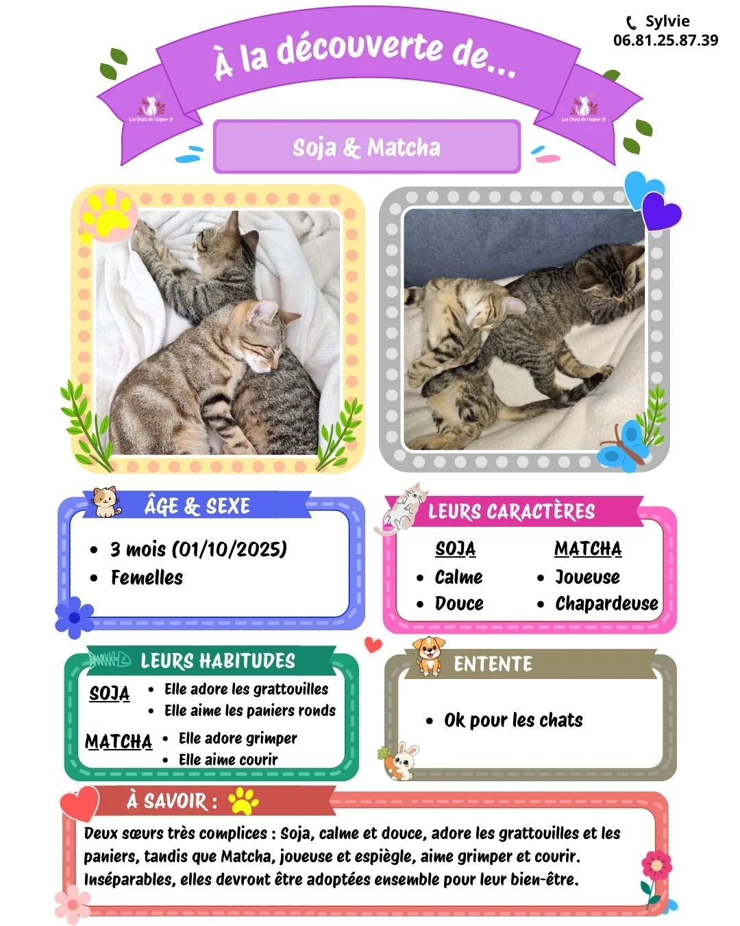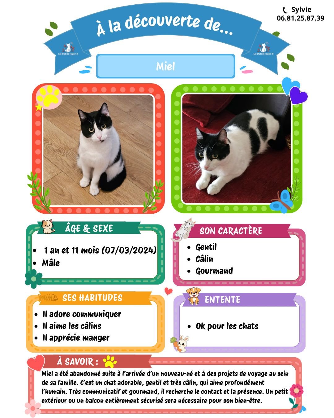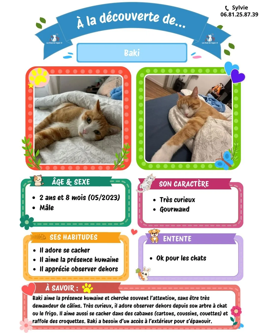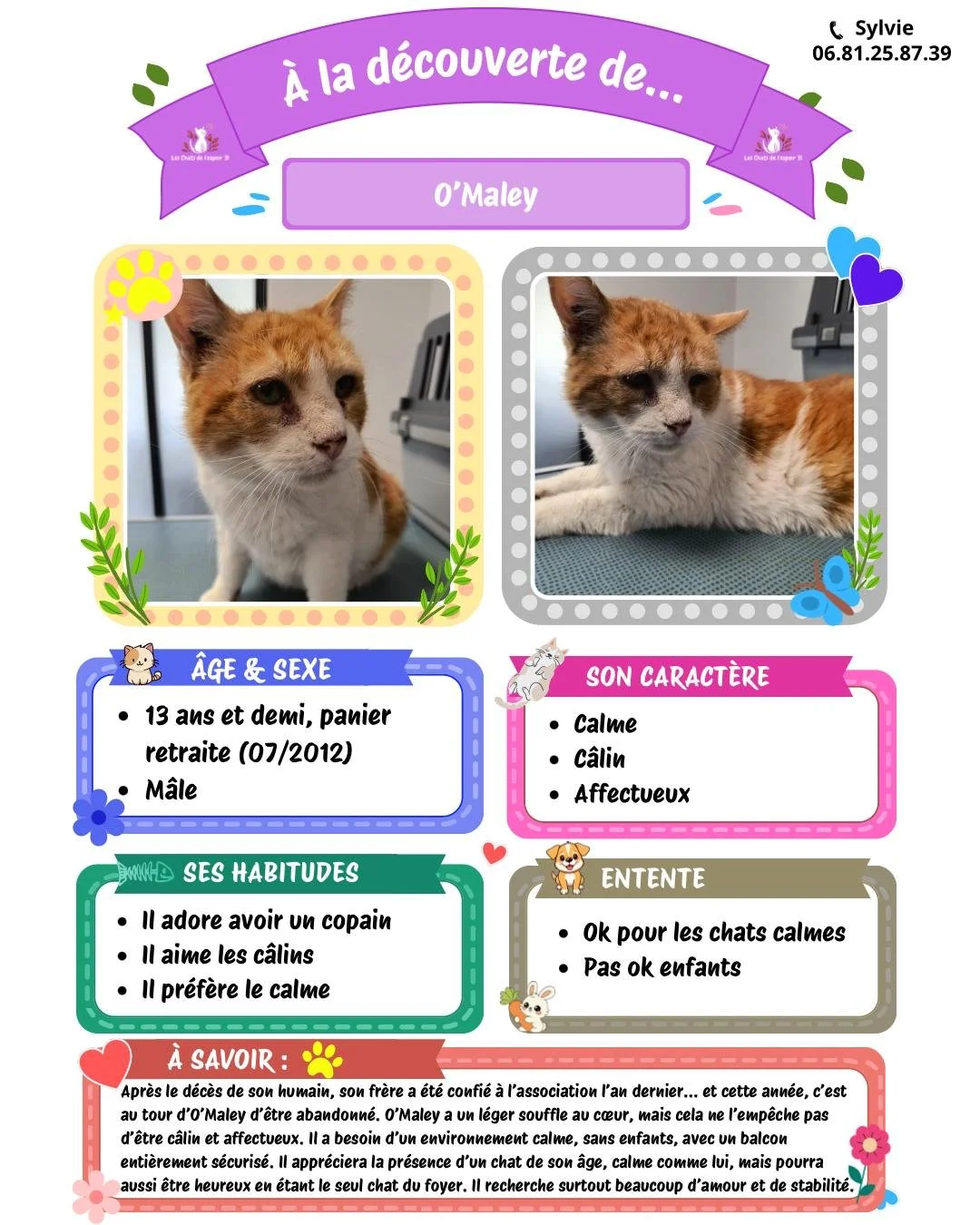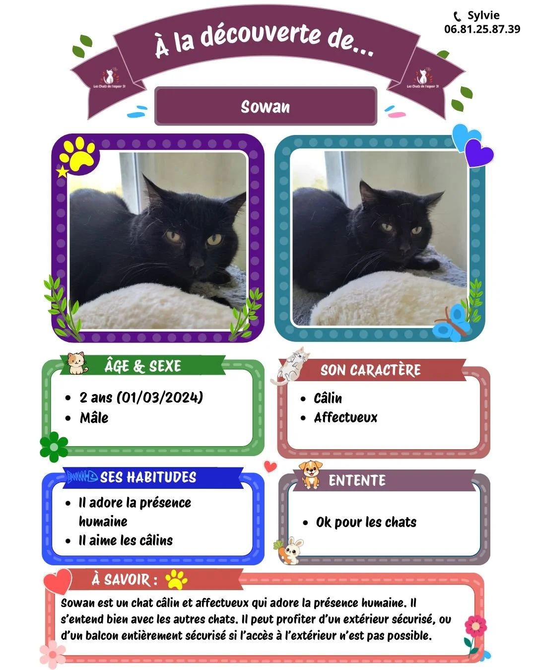 Pour toutes questions ou demande vous pouvez contacter Sylvie au 06.81.25.87.39